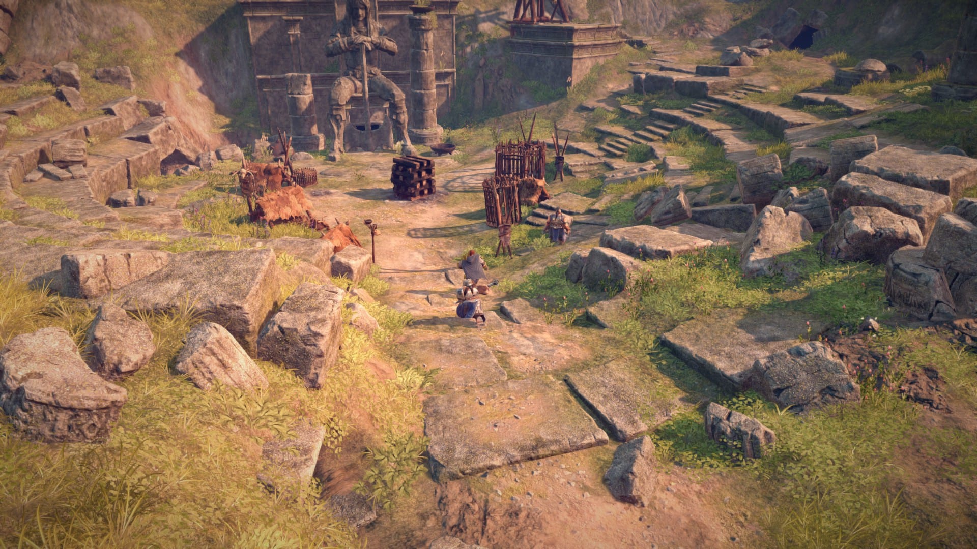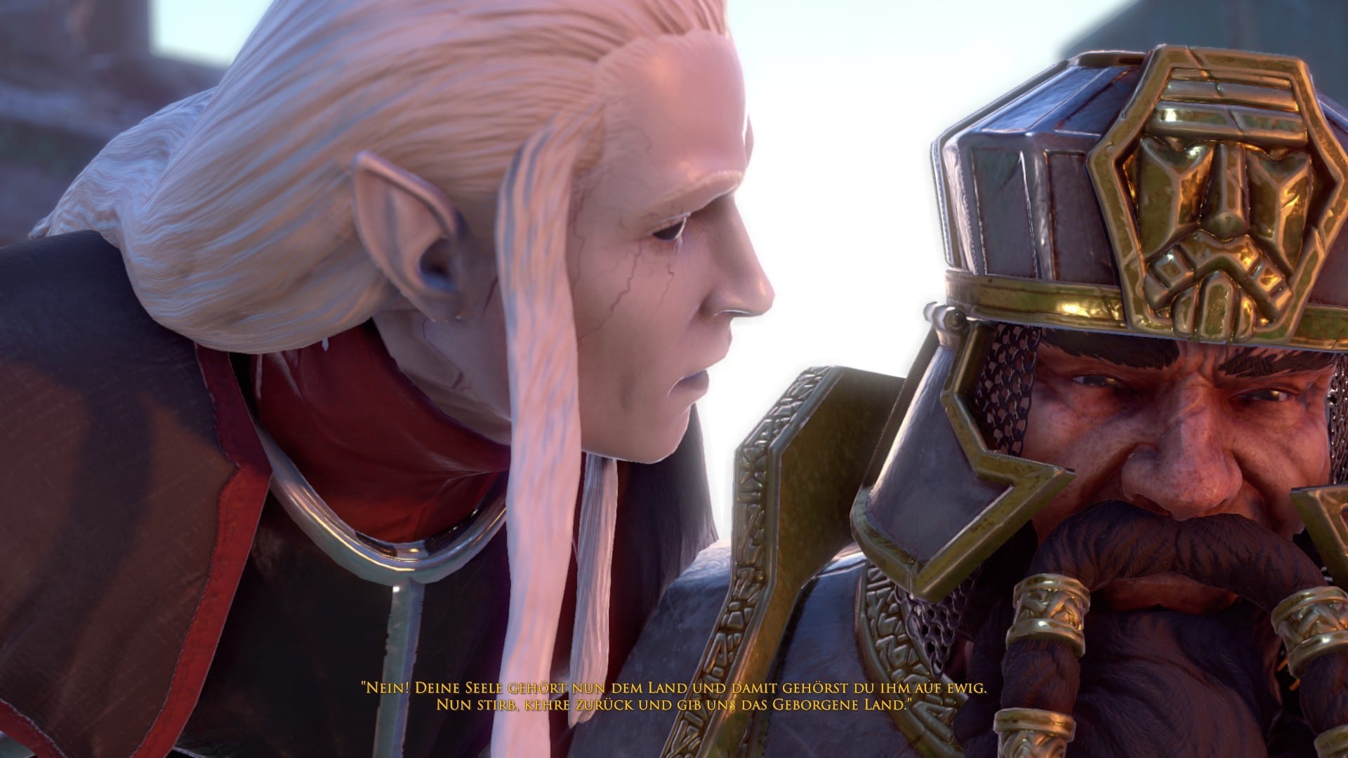 Maßgeblich daran beteiligt sind verschiedene Faktoren. So entschied man sich zum Beispiel dazu, die multiplen Handlungsstränge des Buches auf den Protagonisten Tungdil Goldhand und dessen Begleiter herunterzubrechen. Dies bedeutet jedoch keinesfalls, dass etwas von der Geschichte verloren geht. Durch Gespräche zwischen den verschiedenen Charakteren, die von einem auktorialen Erzähler begleitet und ergänzt werden, bekommt man alle essentiellen Informationen auf direktem Wege vermittelt, ohne dabei allzu viel lesen zu müssen. Denn jeder Charakter im Spiel wurde eigens vertont, sodass es sich zeitweilig so anfühlt, als würden wir ein Hörbuch spielen. Den verschiedenen Figuren wird auf diesem Wege gleichzeitig auch ihre eigene Persönlichkeit aufgedrückt, sprachliche und charakterliche Eigenarten sowie schon aus dem Buch bekannte Phrasen haben oft ihren Weg ins Spiel gefunden und sorgen für Wiedererkennungswert bei denjenigen Spielern, die mit der Vorlage vertraut sind, machen aber auch Unvoreingenommenen schnell klar, was die wesentlichen Merkmale der einzelnen Charaktere sind.