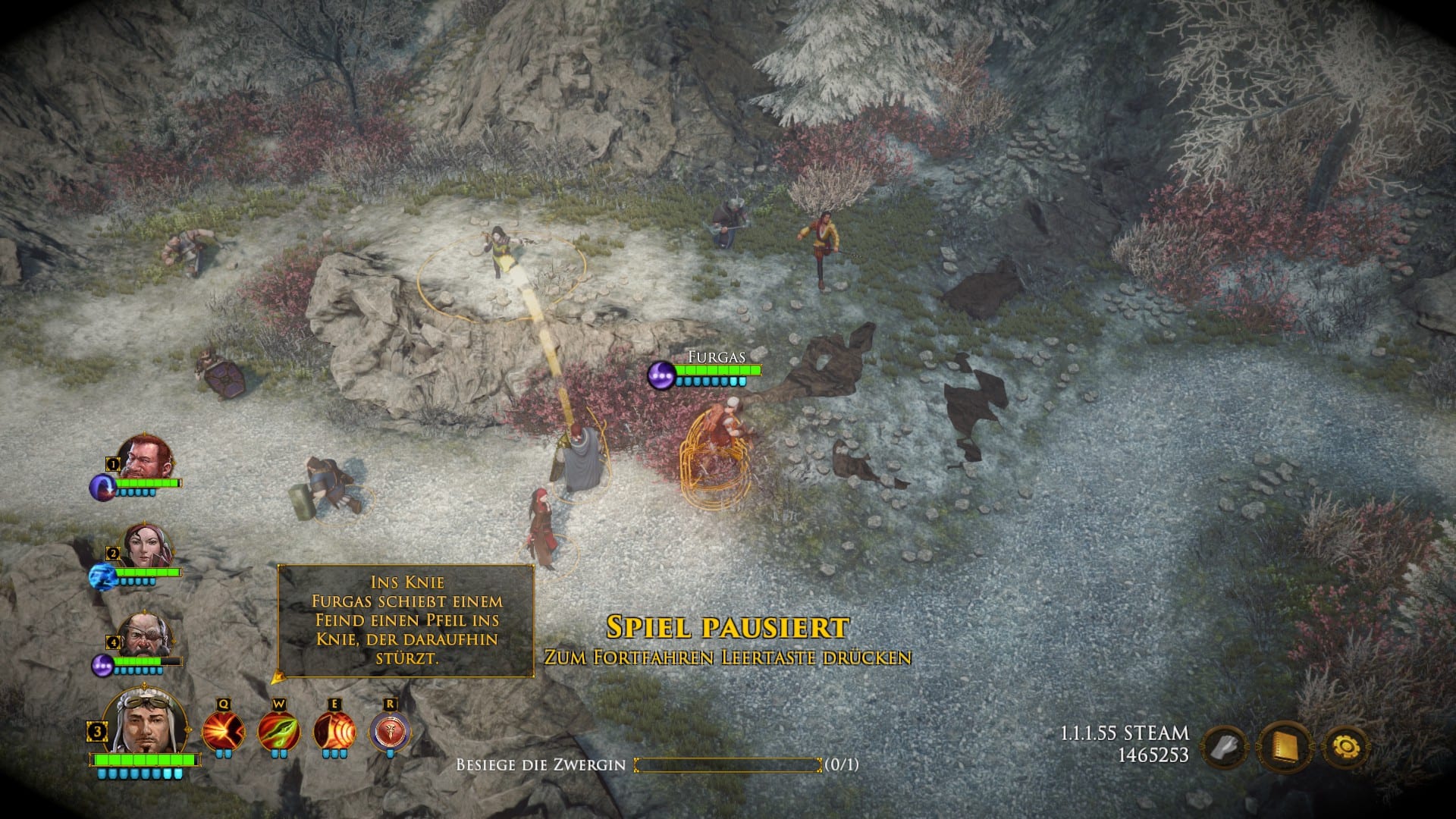 Das Kampfgeschehen selbst zeichnet sich durch sein typisches Erscheinen als Stop&Go-Kampfsystem aus. Nach so gut wie jeder ausgeführten Attacke eines eurer bis zu vier Gruppenmitglieder pausiert ihr das Geschehen, weist neue Angriffsziele und Attacken zu und achtet dabei genau darauf, bloß keinen der eigenen Leute in der Schusslinie zu haben, denn Friendly Fire kann vor allem bei Spezialangriffen, über die jeder Charakter verfügt, ziemlich gefährlich werden. Neben den verschiedenen Fähigkeiten, die eure Protagonisten mit sich bringen – die Maga Andokai schleudert mit arkanen Blitzen um sich, während der technikbegabte Furgas mit vergifteten Pfeilen um sich schießt und eure Zwerge mit ihren Äxten diverse Orkschädel spalten – sticht beim Kampfsystem des Spiels vor allem eine Sache hervor: Es funktioniert ausgezeichnet!