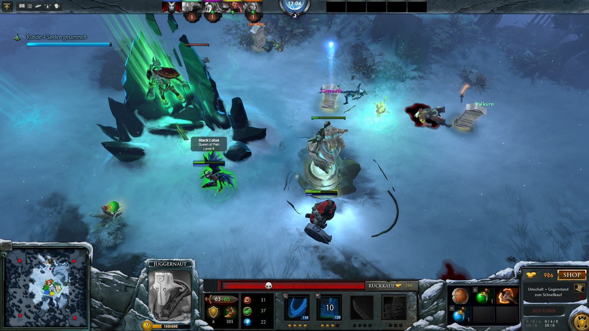 Während des besagten Wraith-Night-Events trumpft Dota 2 mit einem zusätzlichen Spielmodus auf, der all dem 5-vs-5-Geplänke auf symmetrischen Karten abschwört und sich allein dadurch meines Dankes sicher ist. Zwar verfehlt Valve damit den Gedanken einer klassischen Online-Arena, doch dieser findet sich in einem kooperativen Spielmodus wieder, den man wohl eher von alten Karten aus Warcraft 3 kennt. Hier bilden fünf Spieler keine einfache Gruppe, sondern ein Team, das sich zu helfen wissen muss, denn von fünf Seiten strömen in 15 Runden Monsterwellen in das Zentrum der Basis. Trotz einer begrenzten Auswahl an Helden unterliegt man hier dem Charme der Wraith Night, denn alle Charaktere setzen auf die Überzeugungskraft, die dem Hack and Slay ähnelt. Mit dem richtigen Tastendruck wird ein Feld von gerne mehr als zehn Feinden zu weihnachtlichem Puderzucker. Auf die liegen gebliebenen Goldsäcke müssen Kämpfer ein Auge haben, um sich nicht selbst ein Bein zu stellen. Eine wirklich genügsame Alternative zu den harten Kämpfen in den eigentlichen Dota-2-Matches. Selbst zur Wraith Night hat Valve den Frustfaktor aber nicht aus den Codezeilen seines Onlinespiels verbannt. Die Wahrscheinlichkeit, Scharen von Monster auf den zu verteidigenden Altar zuströmen zu sehen, ist nämlich bei Weitem nicht gleich Null.
