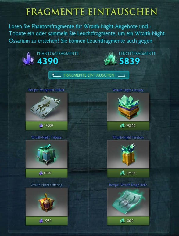 Nett sind diese Mechanismen mit Sicherheit. Gerade Neulingen fehlt in dieser Situation die Angst, durch ihren Tod ins Abseits zu geraten. Viele sind ohnehin der Meinung, das Weihnachtsfest hätte irgendetwas mit irgendeiner Wiederauferstehung zu tun. Ihnen erscheint der vorübergehende Tod daher ganz schön … weihnachtlich. Bei diesem Stichwort darf es auch an einer Bescherung nicht fehlen. Sie liefert Valve in Form von Phantom- und Leuchtfragmenten, die bei Abschluss der Phasen auf das eigene Konto wandern. Wer an einem Handel mit dem Shop von Dota 2 Interesse zeigt, macht aus den besagten Fragmenten in einem Akt des Zauberns schicke Geschenktruhen, die natürlich mit ihrem Inhalt überzeugen möchten.