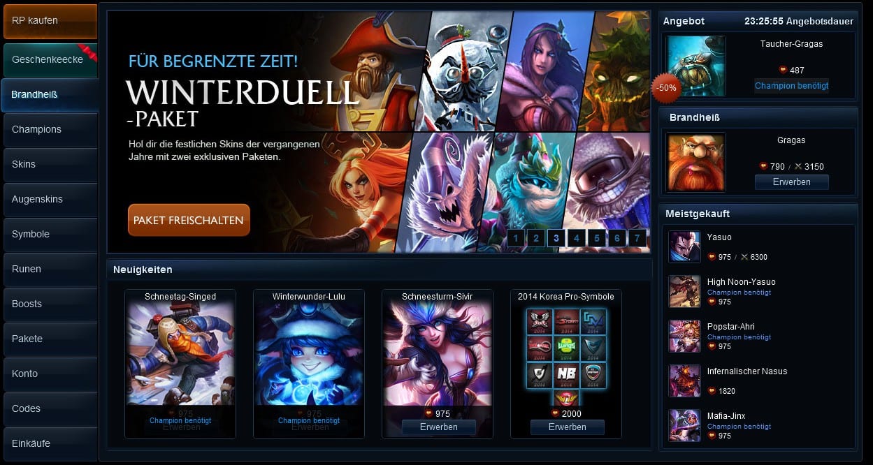 Entwicklungsarbeiten sind auch Riot Games und League of Legends kein Fremdwort. Anders als die Konkurrenz von Valve veröffentlichte man das eigene Onlinespiel aber nicht im Jahr 2013, sondern vier Jahre zuvor. Viele Optimierungsarbeiten und Fortschritte liegen damit bereits hinter den Entwicklern, die dennoch kontinuierlich Schwächen ausmerzen und vor allem bei der Bekämpfung auffälligen Spielerverhaltens strahlen. Um Features wie das Ranked Matchmaking braucht sich League of Legends keine Sorgen zu machen und hat aus gutem Grund die Ruhe des Alters, denn der Erfolg gibt der MOBA Recht. In der öffentlichen Wahrnehmung scheint LoL vielerorts durch die gigantischen Entwicklungen im E-Sport Neugierde zu wecken. Gerade das Weihnachts-Event, das in die Periode zwischen den intensiven Profi-Matches fällt, ist aber ein guter Maßstab, um zu analysieren, wie Riot Games es mit dem inhaltlichen Nachschub für Normalos hält. Gewaltige Entwickler-Ressourcen müssten für das erfolgreichste Onlinespiel seiner Zeit vorhanden sein. Das verantwortliche Studio zaubert hieraus eine geballte Ladung an Skins für den Cash-Shop, wobei in diese Kategorie auch Posten älterer Semester fallen und die Innovationsquote schwächelt.