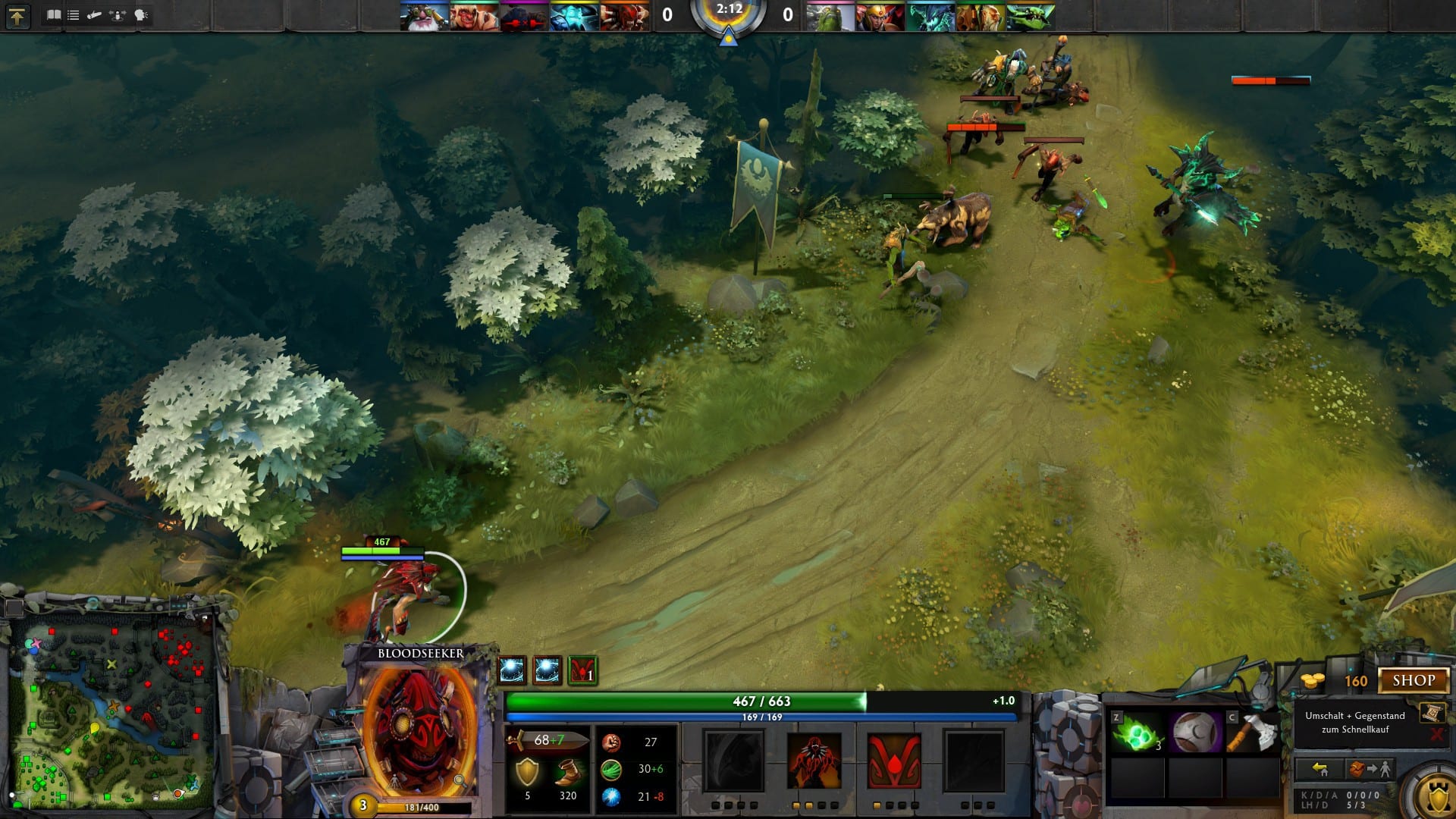 Unterdessen ging zwar kein Ruck durch das grundlegende Spielprinzip, doch angesichts der Beliebtheit der symmetrischen Arena braucht es diesen auch nicht. Da genügt es schon, Dota 2 eine fehlerfreie Umsetzung der klassischen 5-vs-5-Umgebung zu attestieren. Einen technischen Mangel an Dota 2 zu finden, wird selbst nach unzähligen Spielen schwerfallen. Höchstens wird man einige Abweichungen zu anderen Produkten dieser Art feststellen. Geschuldet ist dies Eigenheiten wie den auf der Karte verteilten Shops, der fehlenden zauberbasierten Teleport-Funktion oder dem Mechanismus der Zielauswahl bei den feindlichen Türmen. Ein Buch mit sieben Siegeln ist Dota 2 damit noch lange nicht.