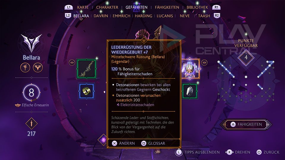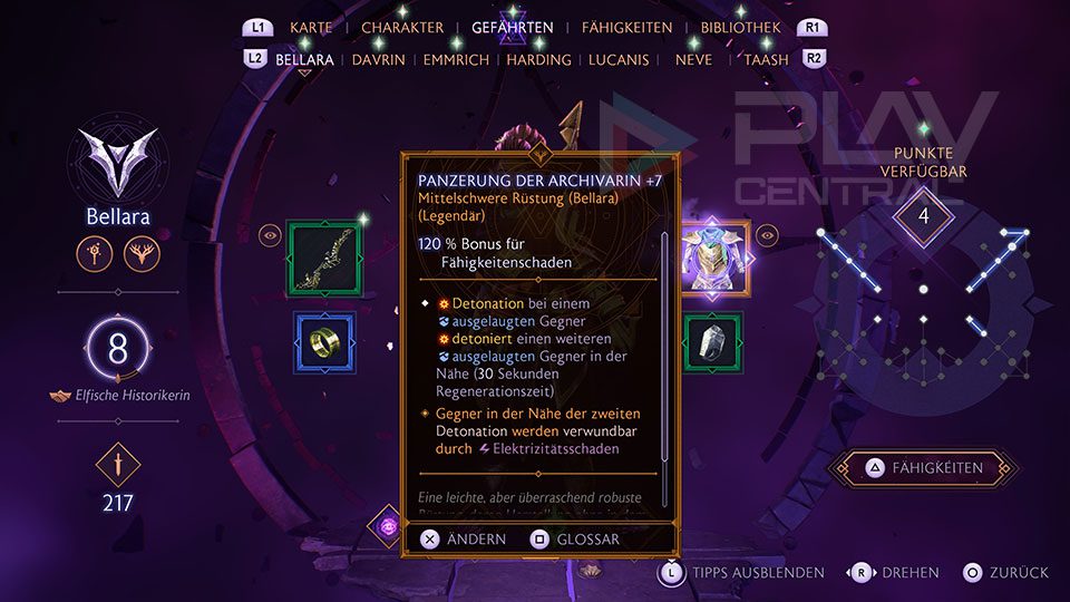 Bellara verfügt nun über die folgende Fähigkeit und legendäre Rüstung, nachdem sie sich dazu entschlossen hat, das Archiv zu behalten.