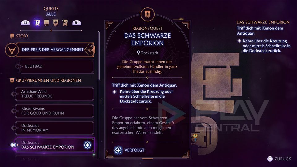 Die Schwierigkeit hierbei besteht bei einigen Spielern daraus, dass sie nicht genau wissen, an welcher Stelle im Spiel die Quest auftaucht. Deshalb erkläre ich in den folgenden Zeilen, wann das Schwarze Emporion freigeschaltet wird und wo es zu finden ist.