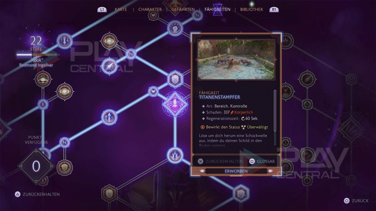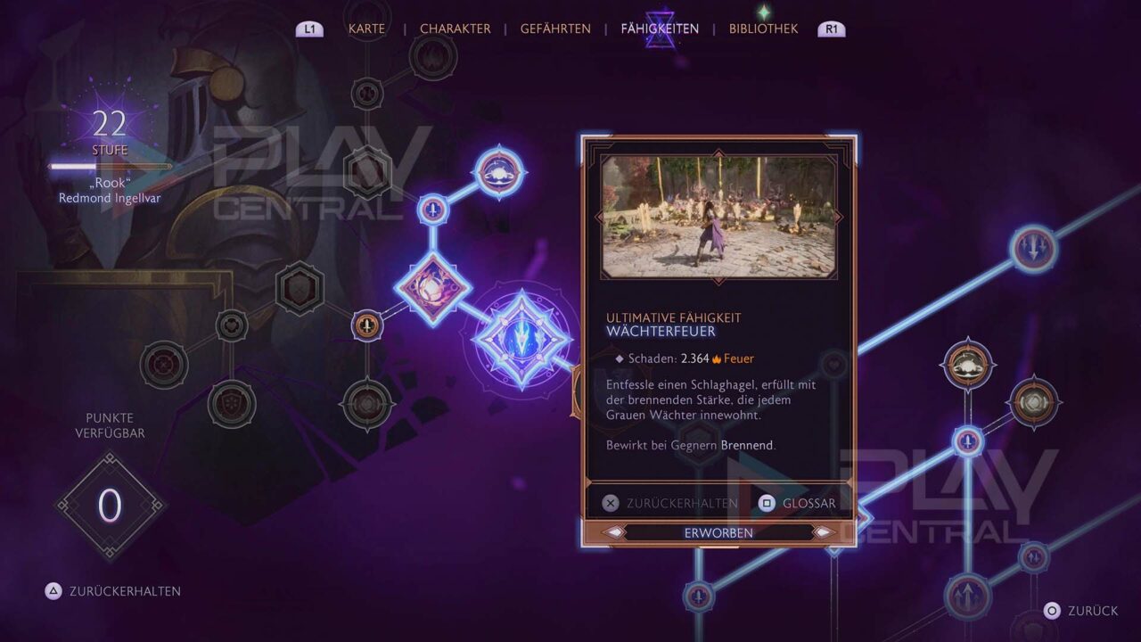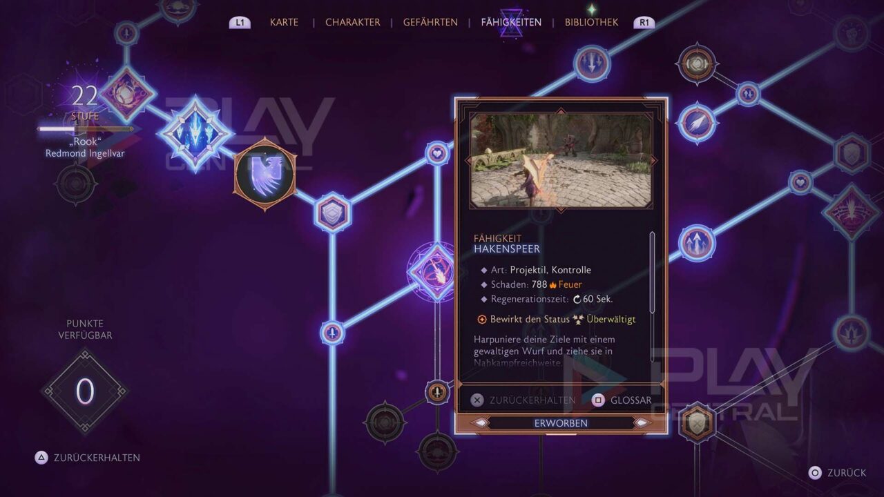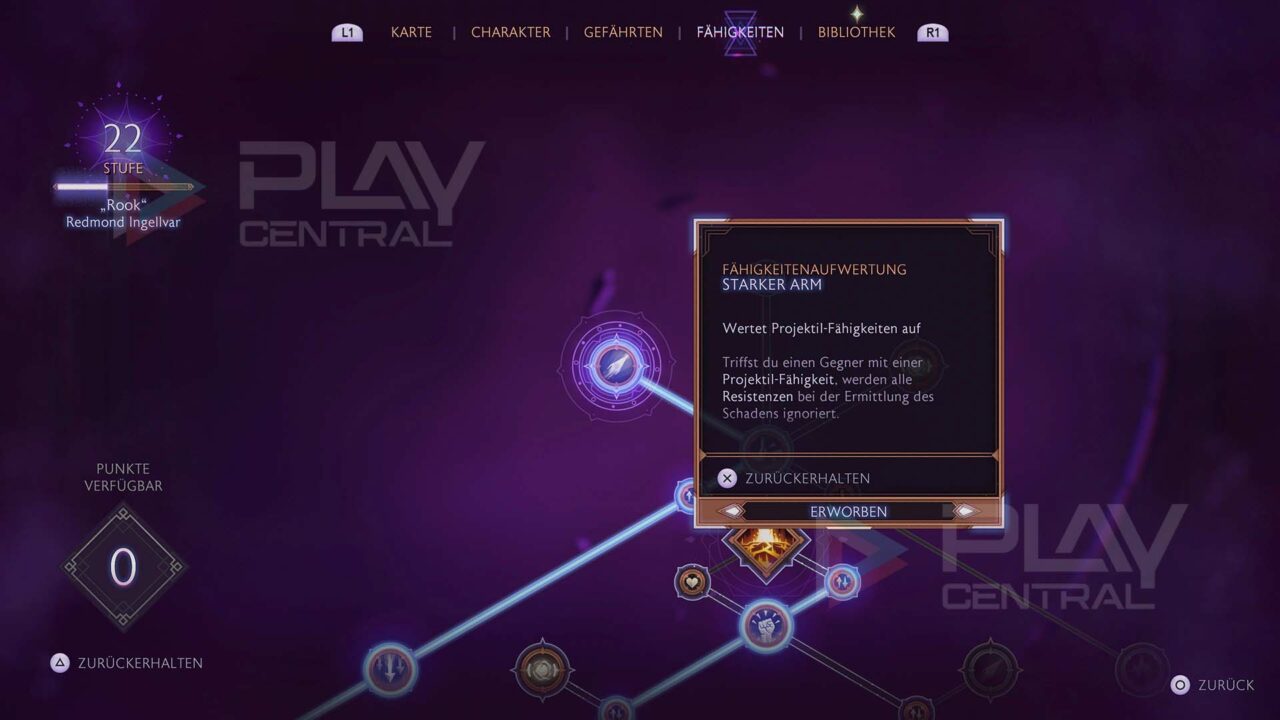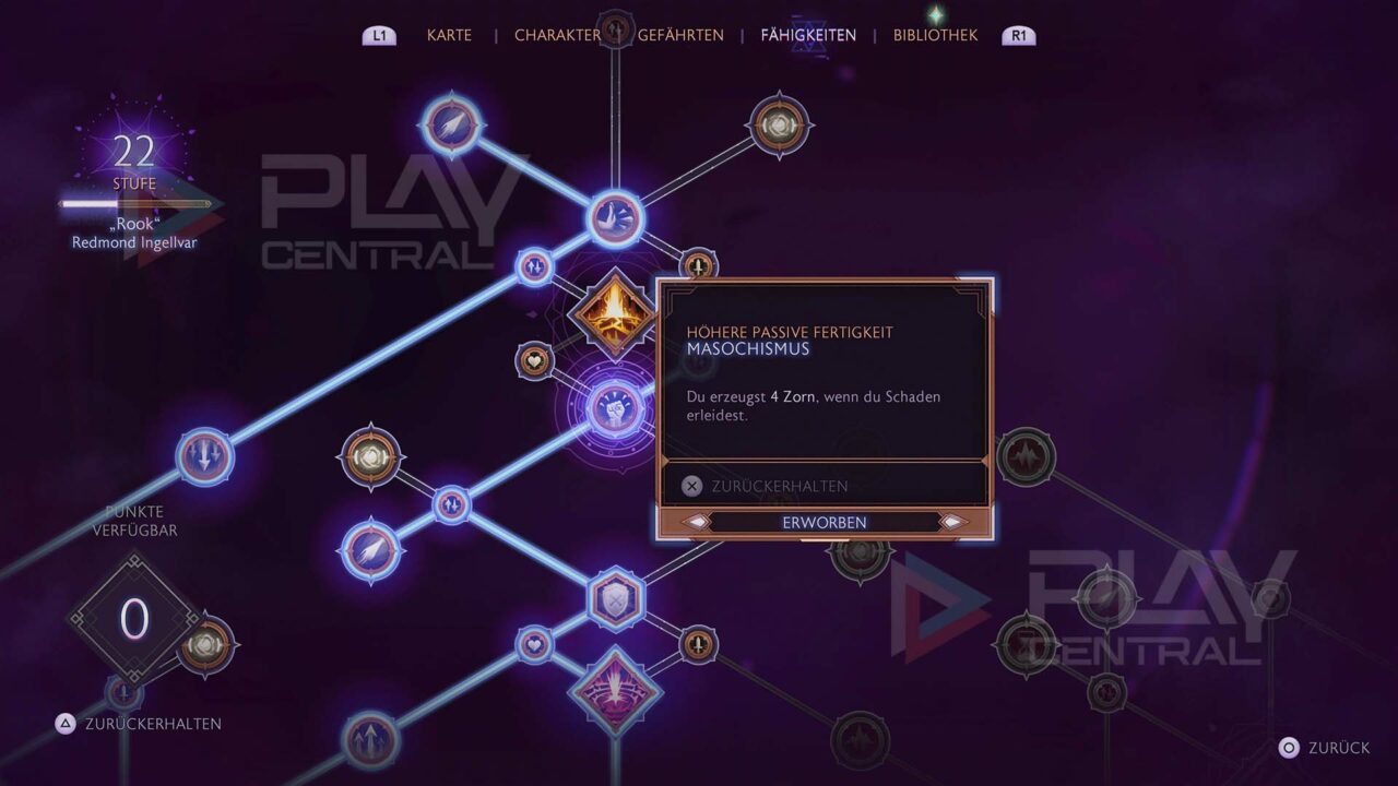 Die Umkehr des aktuellen Builds ist aber möglich, wenn du Schritt für Schritt alle Fertigkeitenpunkte wieder einsammelst. Du kannst die Punkte manuell deaktivieren, um so langsam zum Anfangspunkt (in der Mitte) zurück zu gelangen. Du kannst aber auch über die Dreieck-Taste (PlayStation) alle Fähigkeiten auf einmal wieder einsammeln und von vorne starten.