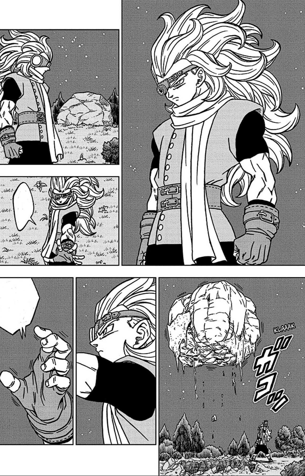 Zunächst hat sich Granolas Äußeres verändert, denn seine Haare sind sehr viel länger und auch sein Körperbau wirkt nun etwas massiger als noch zuvor. Seine neuen Kräfte probiert er auch sogleich aus und er zeigt sich von den Resultaten, die es ihm beispielsweise erlauben, einen gewaltigen Felsen wegzuschleudern und zur Explosion zu bringen, sehr angetan. Anschließend macht er sich auf den Weg, um Freezers Aufenthaltsort in „Dragon Ball Super“ in Erfahrung zu bringen.