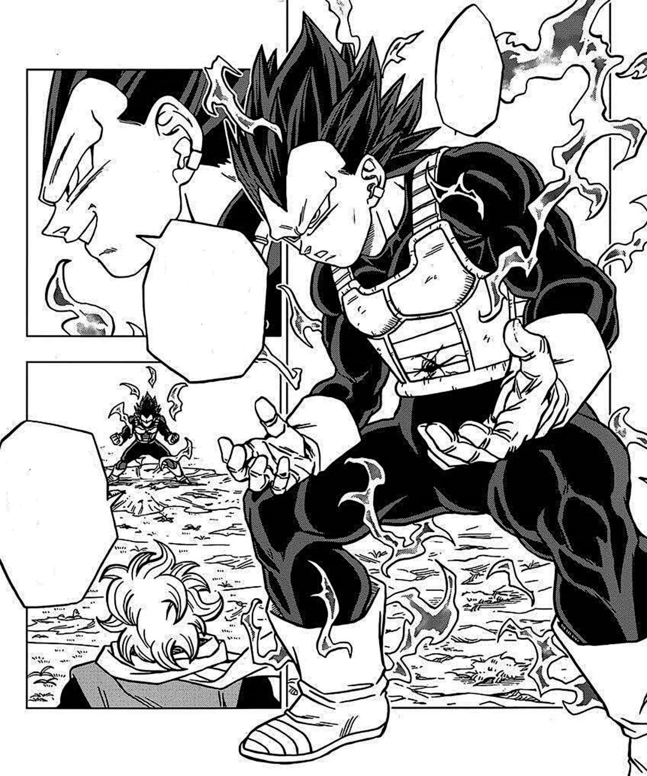 Granolah kann anschließend einen direkten Treffer landen, woraufhin Vegeta anfängt, Blut zu spucken. Der Kopfgeldjäger wähnt sich seines Sieges bereits sicher, doch mit einem Lächeln im Gesicht sagt ihm Son-Gokus ewiger Rivale, dies sei genau der Moment, den er lieben und der sein Saiyajin-Blut zum brodeln bringen würde. Kurz darauf wird Vegetas Körper von lodernden Flammen umhüllt, ehe eine neue Verwandlung zum Vorschein kommt.