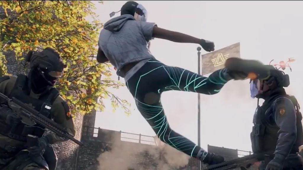 Meine „Juhu, ein neues Watch Dogs!“-Gedanken wichen nach rund 60 Sekunden Gameplay Augenrollen. Ja, Szenen direkt aus dem Spiel, ohne große CGI-Politur, sind der ehrliche Weg, um das Produkt zu promoten. Und ja, ihr wolltet möglichst viel von den neuen Features zeigen. Aber gerade der Anfang hat sich gezogen wie Kaugummi, ich habe mich beinahe angefangen zu langweilen. Das lag unter anderem an der eintönigen Lichtstimmung der Szene und meiner Ungeduld, während der Protagonist, gefühlt in Zeitlupe, über den Platz lief und alle potentiellen Charaktere scannte. Geht das nicht schneller?