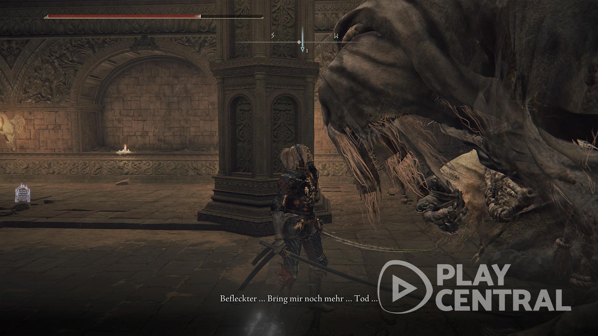 Hat er überlebt, übergebt ihr so oder so die Wurzel dem Krieger, entweder bei der Brücke am Dorf oder eben in der Feste. Nun wird euch der NPC über den Bestienkleriker Gurranq aufklären, der sich im Refugium der Bestien in Caelid aufhalten soll. Um den Ort in „Elden Ring“ zu finden, zeichnet euch D einen Teleporter auf eurer Karte ein.