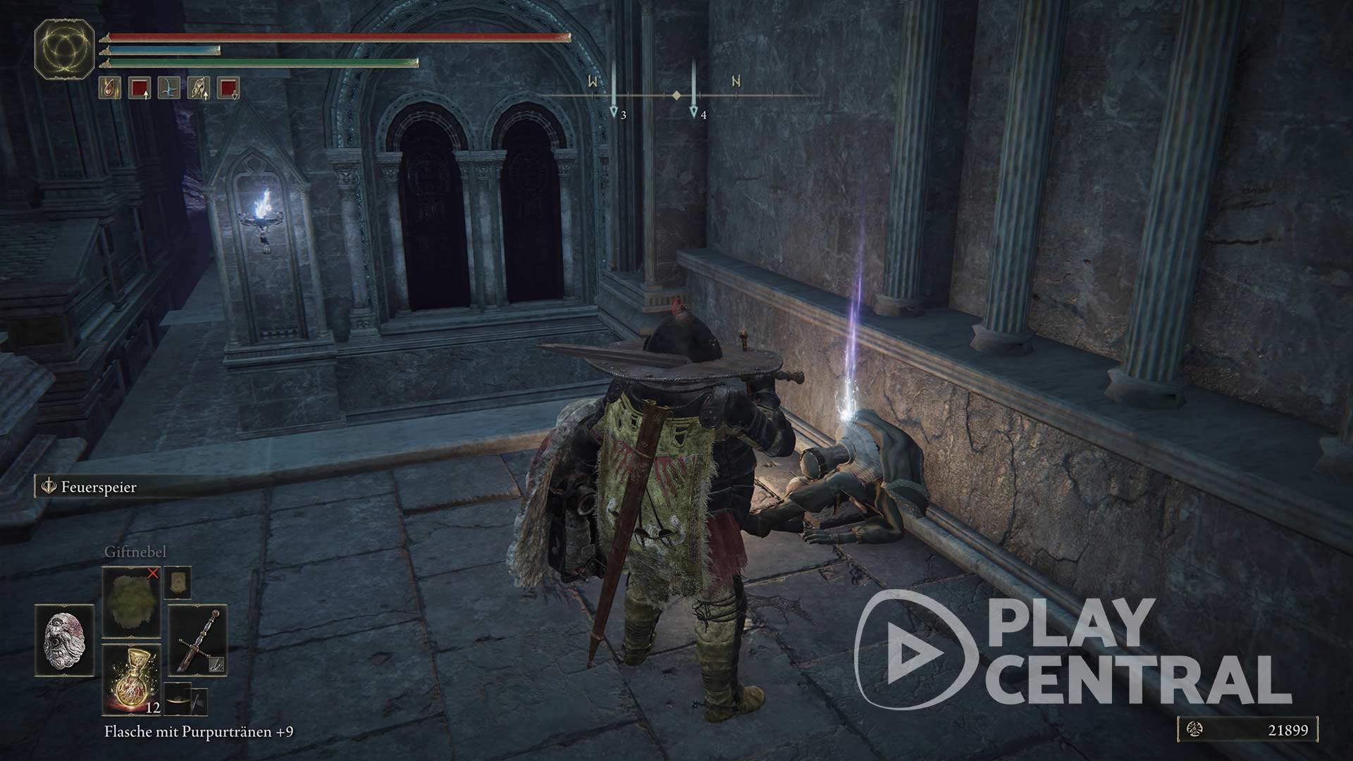 Habt ihr den Schlüssel zur Truhe in der Bibliothek der Akademie von Raya Lucaria erhalten, schnappt euch den Dunkelmondring und kehrt damit zum Fäulnissee zurück, wo nun kein Siegel mehr den Weg versperrt. Am Mondlichtaltar angekommen begebt ihr euch zum Siegelgefängnis und besiegt dort das Oberhaupt der Assassinen Alecto.