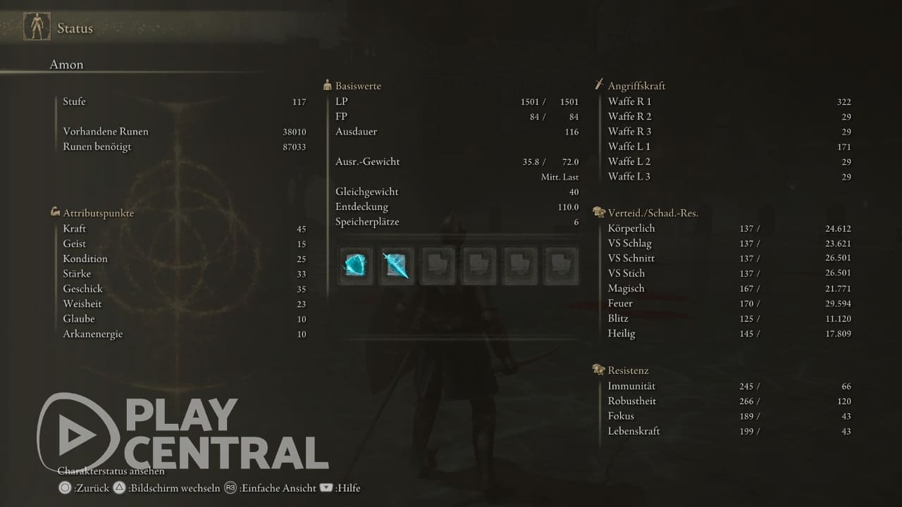 Doch einige Magiesprüche in „Elden Ring“ verbrauchen nicht nur FP, sondern auch Ausdauer, weshalb ihr ebenfalls Punkte in Kondition investieren solltet. Darüber hinaus gibt es das Attribut Arkanenergie. Je mehr Punkte beziehungsweise Runen ihr in dieses steckt, desto besser kann eure Spielfigur verschiedenen Magieangriffen trotzen.
