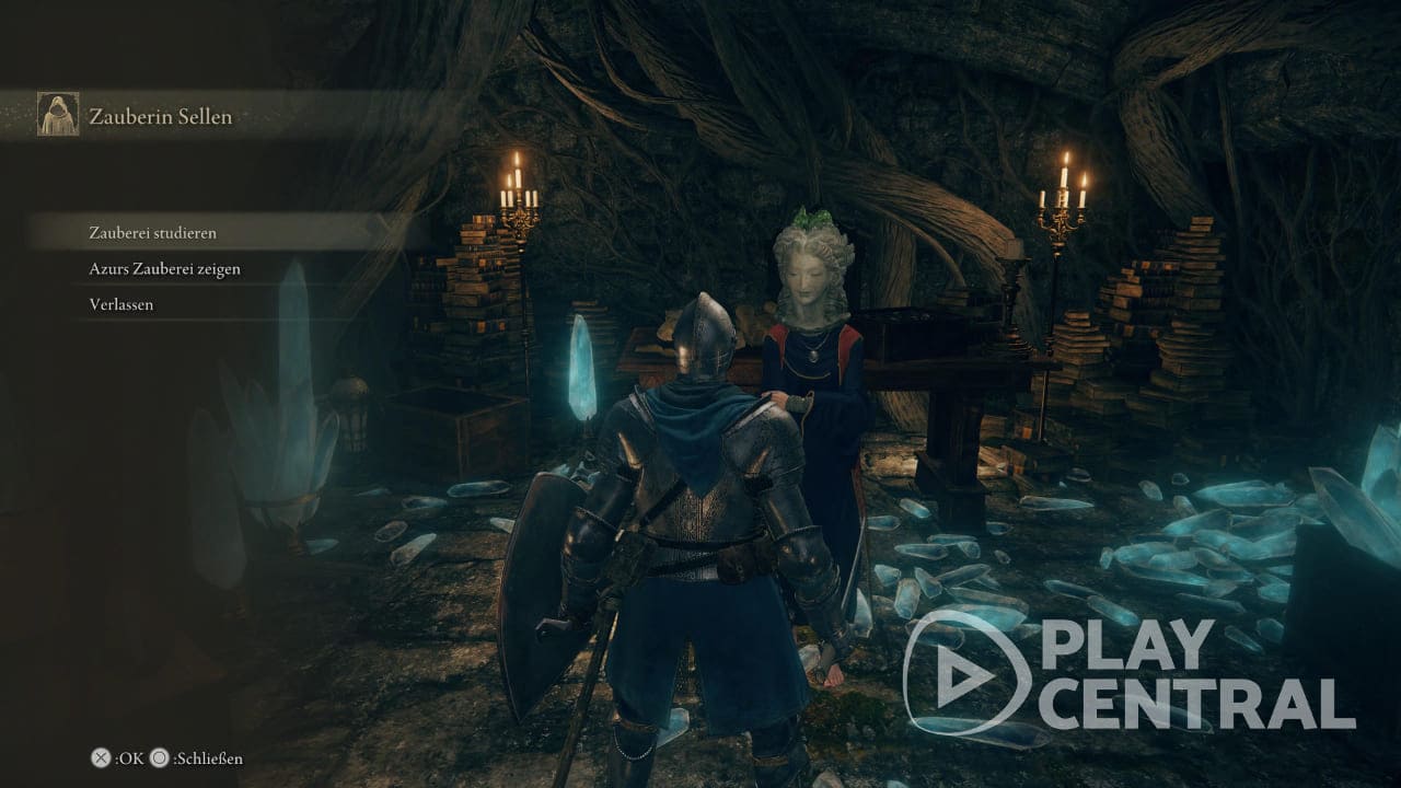 Nachdem ihr euren Charakter nun aufgelevelt und ausgerüstet habt, seid ihr schon fast bereit, Magie einzusetzen. Sobald ihr einen Zauber erlernt beziehungsweise freigeschaltet habt, müsst ihr diesen an einem Ort der Gnade nur noch in einen freien Zauber-Slot einsetzen. Lasst eure Spielfigur danach einen Zauberstab in die Hand nehmen, wählt über das Steuerkreuz einen Zauber aus und legt los!