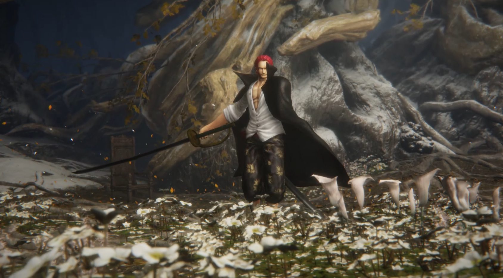Doch natürlich nicht irgendwelchen Bossen, der Modder hat darauf geachtet, dass die beliebten Piraten in zu ihnen passende Rollen schlüpfen. So übernimmt der starke Nahkämpfer Kaido die Position von General Radahn, Whitebeard benutzt als Godfrey, passend zu seiner Teufelskraft, Erdbeben-Attacken und Shanks vertritt die einarmige Malenia.