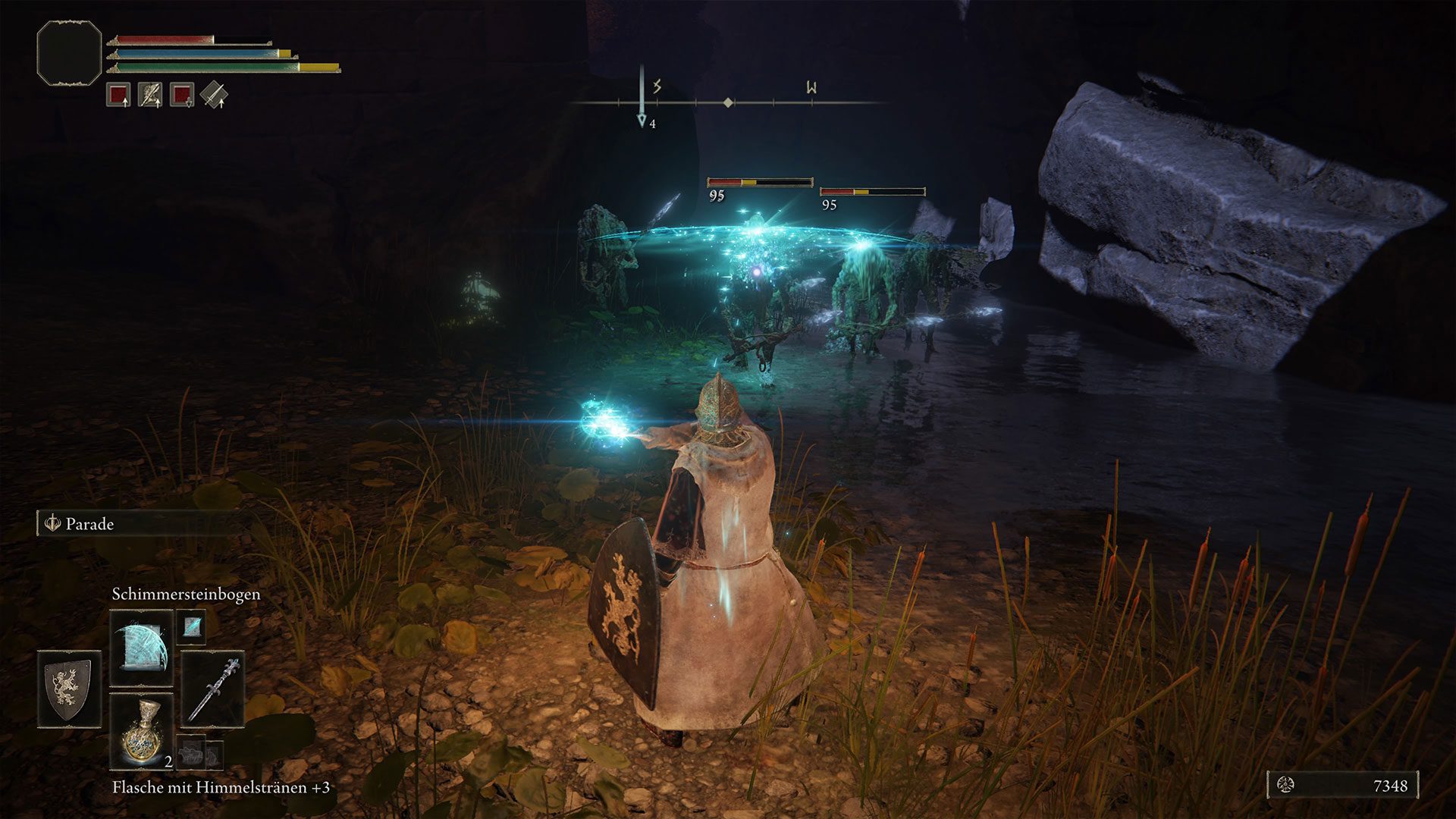 Allerdings beschert euch „Elden Ring“ diesmal mehr Optionen, damit derartige Faux-Pas nicht ganz so häufig vorkommen wie etwa in der Dark-Souls-Reihe. Allen voran Reittier Sturmwind. Mit dem gehörnten Gaul galoppiert ihr mit ordentlich Tempo durch die Welt und weicht so Feinden aus. Im Kampf ist Sturmwind ebenfalls enorm hilfreich: Schläge vom Ross herunter richten ordentlich Schaden an und das Umkreisen von Widersachern ist gerade in der ersten Phase des Spiels enorm nützlich.