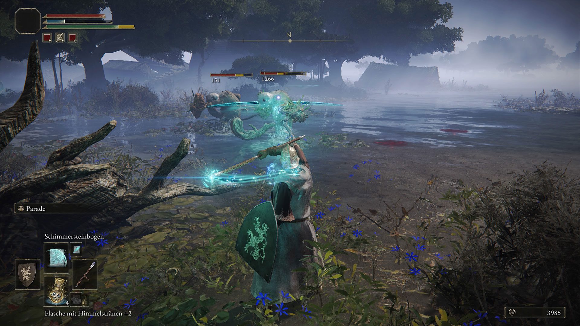 Im Fokus eurer Touren durch Zwischenland steht natürlich der Kampf. Egal, ob auf den saftig grünen Auen von Limgrave, in den finsteren Sümpfen der Seenlandschaft oder gar in Katakomben und späteren Regionen – Viele Freunde trefft ihr nicht. Dafür setzt euch From Software aber eine Fülle kreativer und vor allem tückischer Monster und Kreaturen vor.