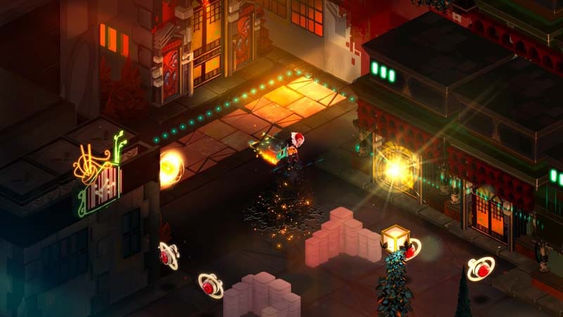 „Transistor ist ein Action-Rollenspiel der Macher von Hades und Bastion, das in einer Sci-Fi-Welt spielt. Kämpfe dich mit einer außergewöhnlichen Waffe unbekannter Herkunft durch eine atemberaubend futuristische Stadt.