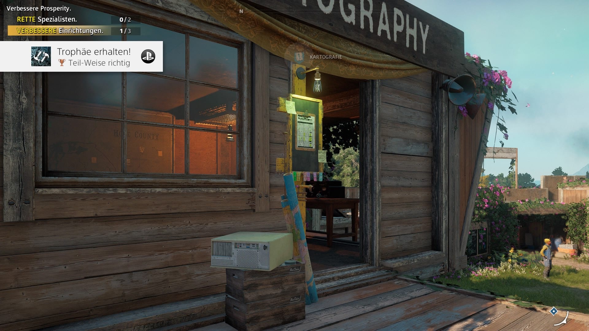 Am meisten Sinn macht Ethanol noch bei dem Hubschrauber. Denn damit könnte man, wenn auch höchst uneffektiv, tanken. Der Pilot ist abenteuerlustig und guter Dinge, euch an die entlegensten Winkel des Landes, außerhalb Hope Countys, zu bringen. Diese Gebiete sind abgesteckt und nicht so frei erkundbar wie der Rest der Map, dieser Aspekt bringt aber ganz schön Abwechslung ins Game. Habt ihr dort dann alles erledigt, geht’s mit neuen Erfahrungen und Loot wieder zurück.