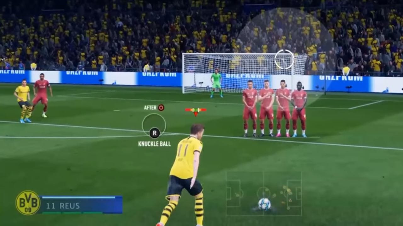 Knuckle Balls sind die schwerste angeschnittene Freistoß-Variante in „FIFA 20“. Ihr führt sie aus, indem ihr den rechten Analogstick von unten nach oben und dann erneut nach unten bewegt. Hier müsst ihr schnell vorgehen, denn sonst zählt der Schuss lediglich als normaler Top Spin.
