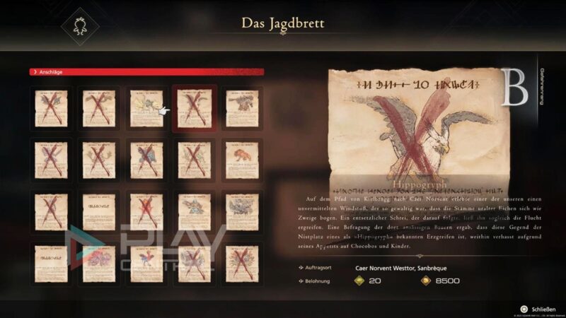 Im Versteck könnt ihr euch beim Mogry Nektar an dessen Jagdbrett nach dem Aufenthaltsort verschiedener mächtiger Bestien erkundigen. Insgesamt gibt es 32 sogenannte Berüchtigte Gefahren in „Final Fantasy 16“, doch nur von vier dieser Gegner erhaltet ihr Rotlegierung.