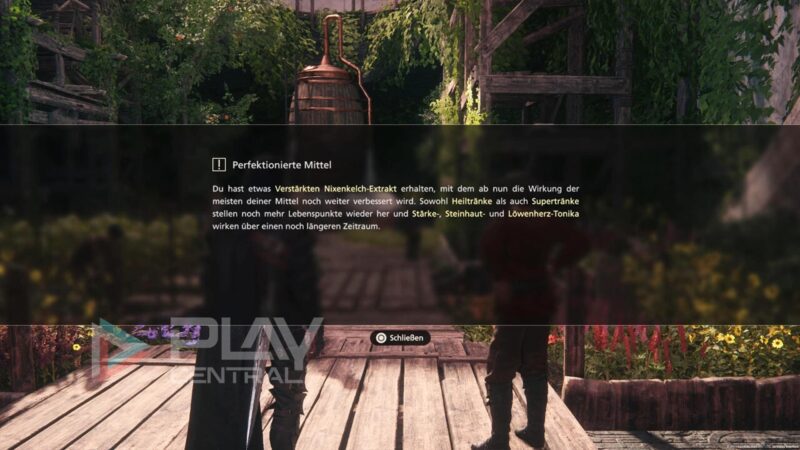 Im Gegenzug wird euch Nigel ein Verstärktes Nixenkelch-Extrakt aushändigen. Diese Tinktur holt nun wirklich das absolute Maximum aus euren Tränken und Toniken heraus.