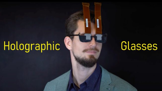Die sogennanten Holographic Glasses können ein vollfarbiges, holografisches 3D-Bild erzeugen. Für den Prototyp kommen Pfannkuchengläser zu Einsatz, die das erheblich schmalere Profil ermöglichen.