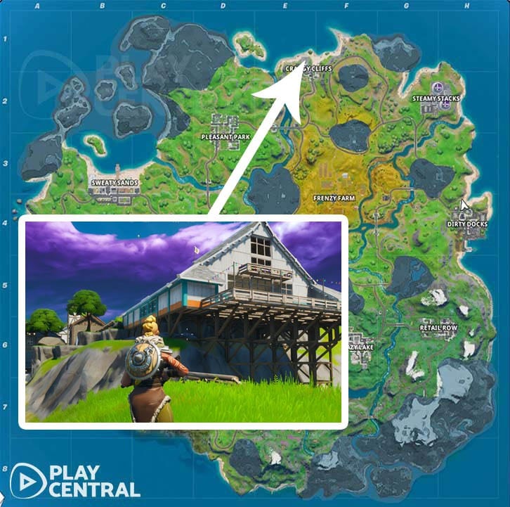 Das versteckte O befindet sich also ganz im Norden bei den neuen Craggy Cliffs. Hier müsst ihr vom Wasser aus auf das Haus sehen. Unterhalb der Holzbrüstung befindet sich der Buchstabe. Baut euch einen Weg vom Steinvorsprung herüber und schon habt ihr ihn.