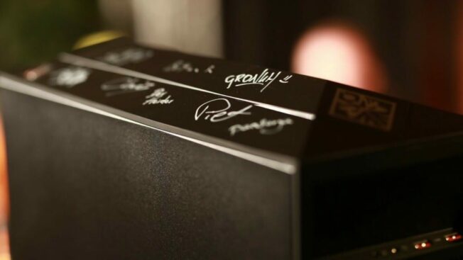 OMEN Obelisk Desktop: Omen bietet den Käufern hier einen Omen-Desktop, ausgestattet mit einer Nvidia RTX 2070 8GB und einer 512GB SSD bietet das kompakte Teil alles was das Gamer-Herz begehrt. Verziert wurde das Ganze dabei mit den Unterschriften der einzelnen Friendly Fire 5-Teilnehmer.