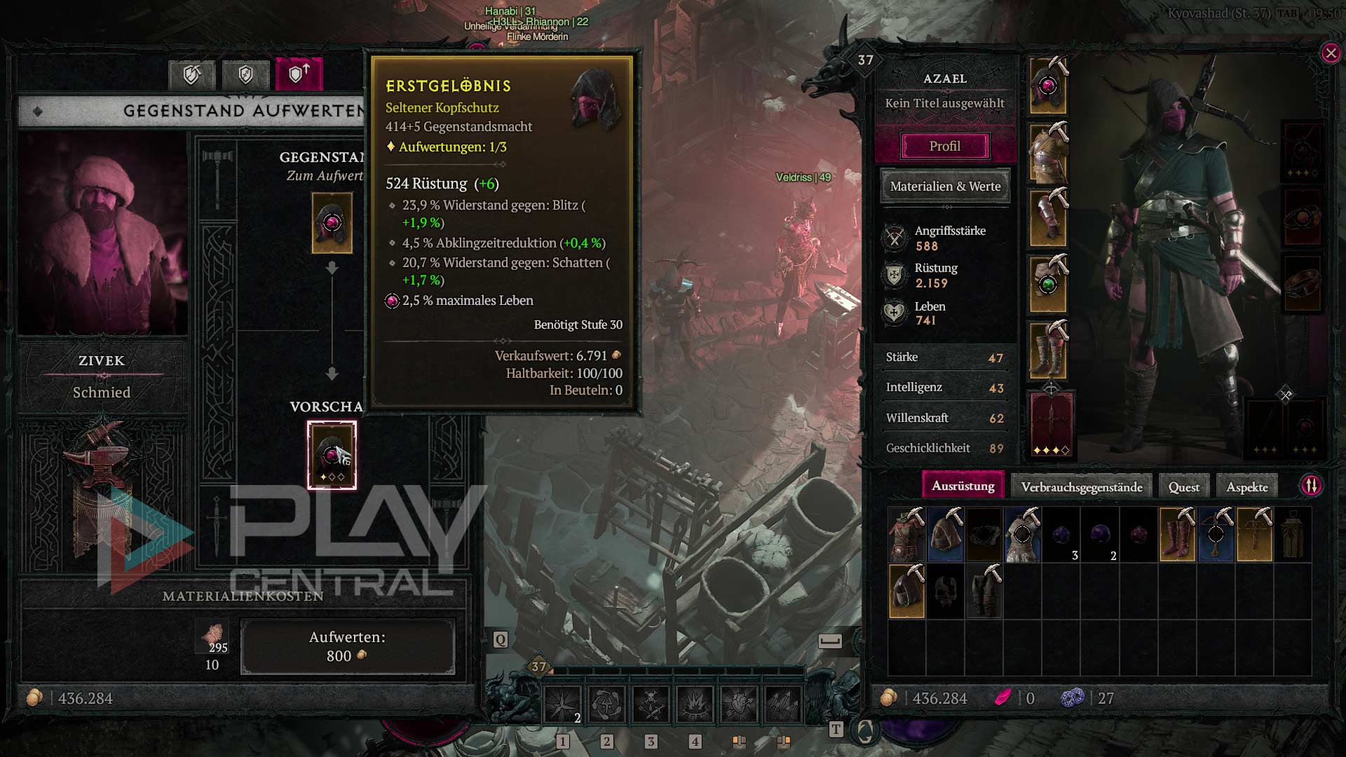 Aus diesem Grund ist die Vorschau beim Schmied entscheidend, da ihr bereits seht, welches Ergebnis ihr im Fall einer Aufwertung erzielen würdet.