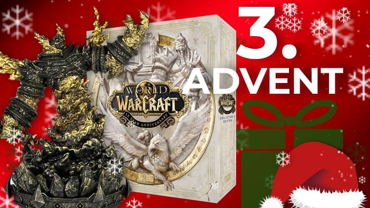 Während unsere ersten beiden Adventstürchen stets etwas enthielten, das ihr locker noch irgendwo zum Ladenpreis erwischt hättet, sieht es diesmal ein wenig anders aus. Denn wir verlosen zwei sagenhafte Exemplare der „World of Warcraft 15th Anniversary Collector’s Edition”, die nicht mehr im Handel erhältlich ist!
