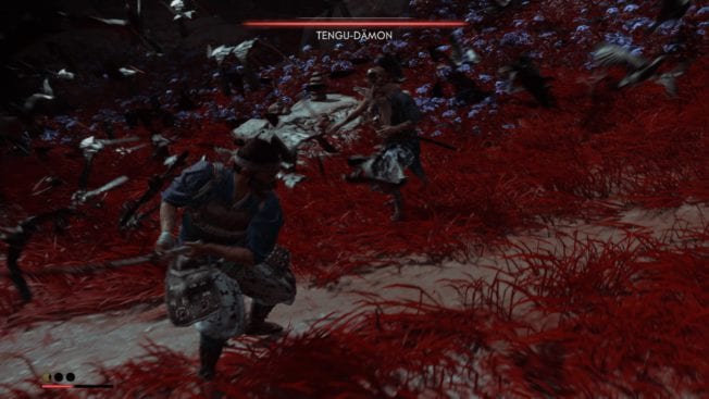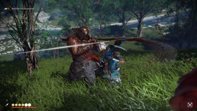 In den hitzigen Gefechten von „Ghost of Tsushima“ kann es oft vorkommen, dass euch mehrere Gegner mit verschiedenen Waffen gleichzeitig angreifen. Dann solltet ihr einen kühlen Kopf bewahren und lieber auf Abstand gehen. Nutzt Kunai-Messer oder eine Rauchbombe, um einige Meter zwischen euch und den Feinden zu gewinnen. Ihr könnt nämlich nur sehr schwer gegen viele verschiedene Gegner gleichzeitig ankommen. Meistens werdet ihr von der Seite angegriffen, wenn ihr einen Feind gerade malträtiert.