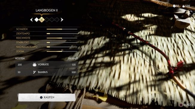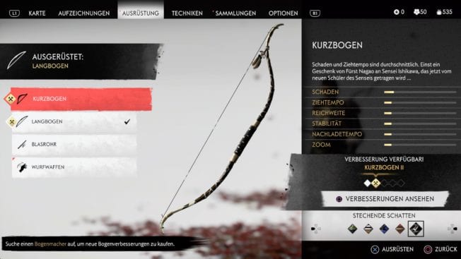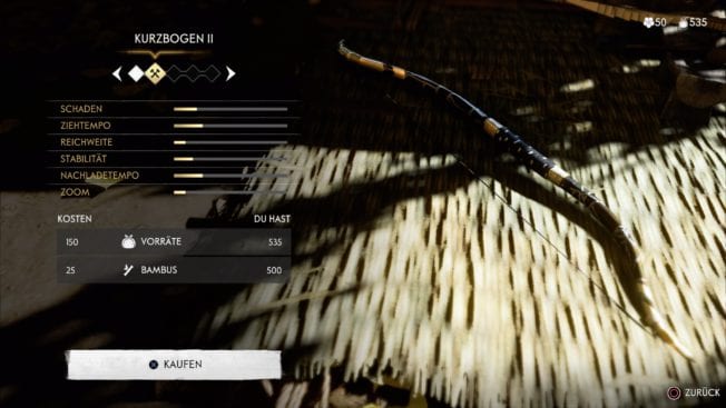 Fundort: Den Kurzbogen bekommt ihr früh im Spiel. Schließt dafür die Quest „Die Geschichte von Sensei Ishikawa“ ab.