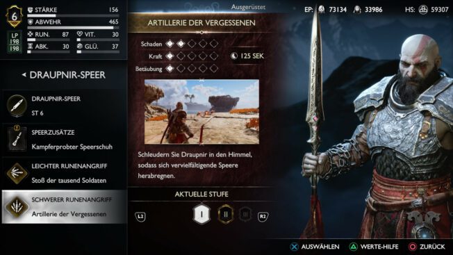Kratos besitzt in „God of War Ragnarök“ drei Hauptwaffen: Die Leviathanaxt, die Chaosklingen und der Draupnir Speer. Für jede Waffe lassen sich ganz eigene leichte und schwere Runenangriffe finden und ausrüsten. Wir zeigen euch jeweils zwei der besten schweren Runenangriffe für jede Waffe, wo ihr sie findet und wie viele Erfahrungspunkte ihr zum Aufleveln braucht.