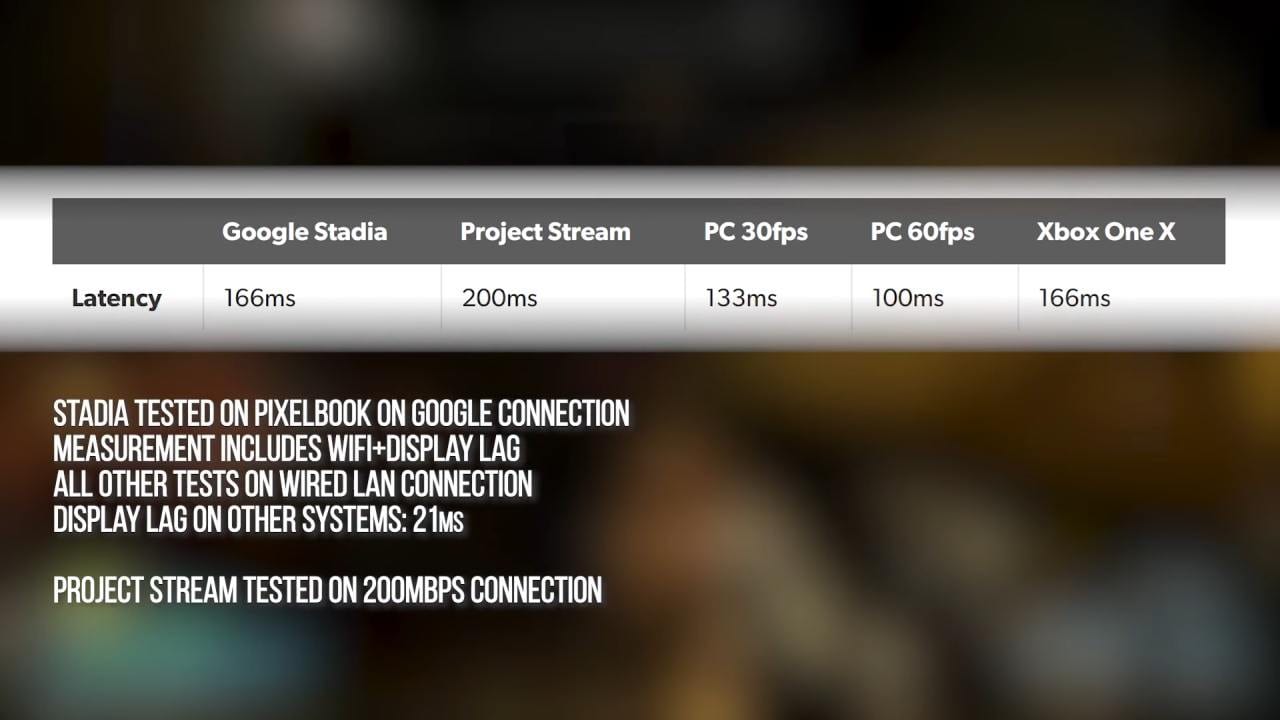 Dabei wurde dem Tester jedoch versichert, dass es sich dabei um eine neuere Version des Streaming-Service handle. Mithilfe einer Highspeed-Kamera mit 240 FPS konnte der Tester die Eingabeverzögerung überprüfen und kam zu dem Ergebnis, dass diese trotz unterschiedlicher Testbedingungen bei der aktuellen Version von „Stadia“ geringer ausfällt.