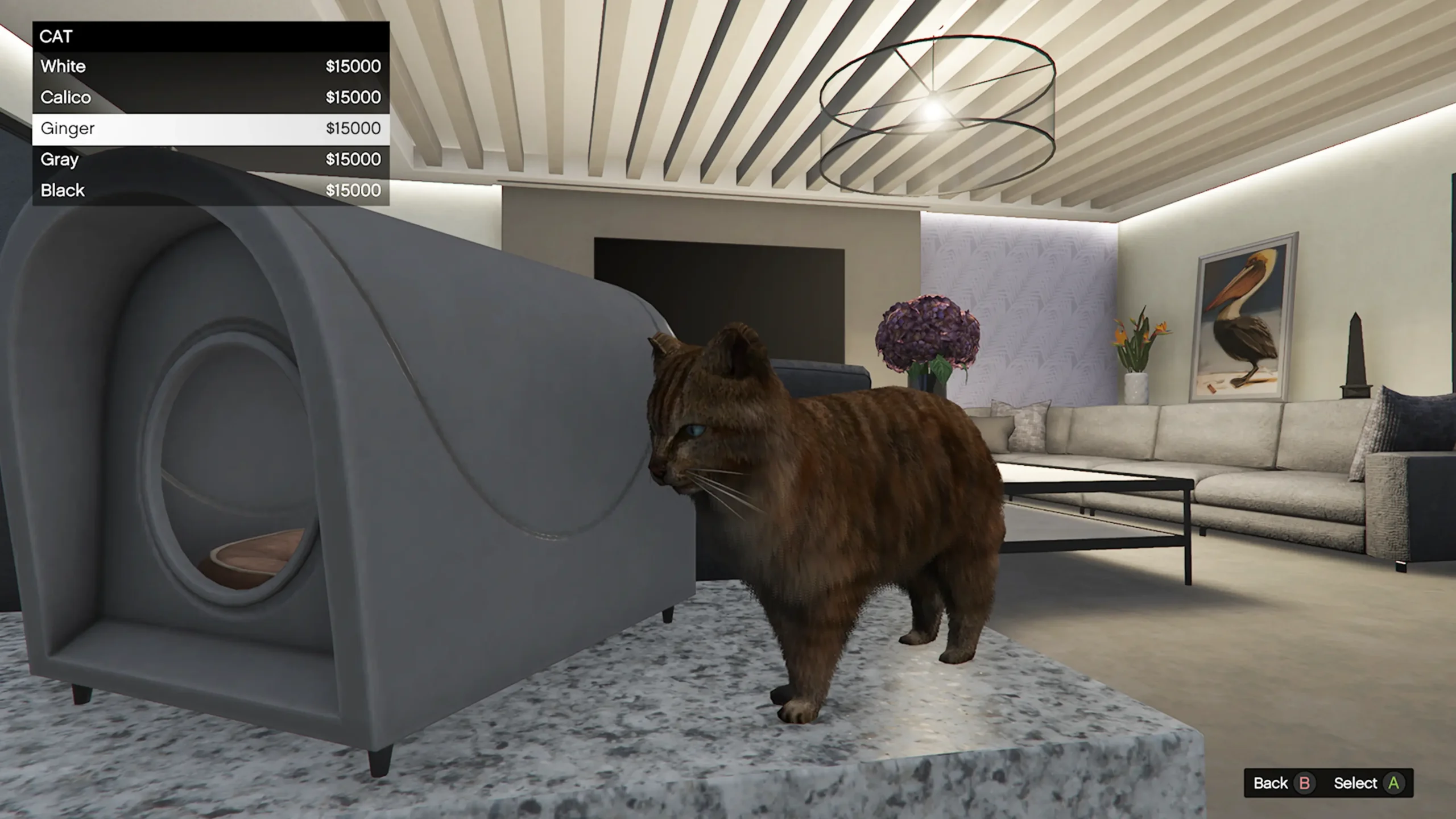 Alle Katzen kosten jeweils 15.000 GTA-Dollar und können über den Kennel in der Lounge gekauft werden. Auch Farben und Namen lassen sich dort ändern.