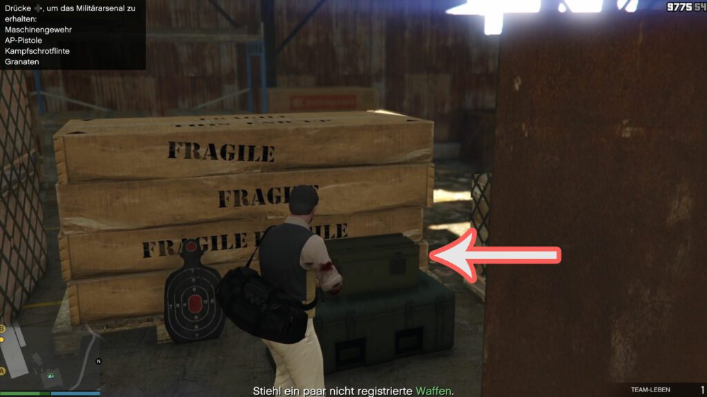 Im Rahmen der Vorbereitungsmission Waffenbeschlagnahmung müsst ihr für das spätere Finale Waffen und Ausrüstung stehlen. Von eurem Auftraggeber Vincent Effenberger bekommt ihr zu Beginn via SMS Bilder der 3 möglichen Ziele zugeschickt.