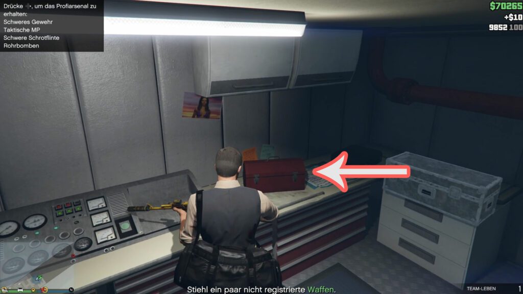 Ihr erhaltet ihr die besten Waffen und die beste Ausrüstung. Jede der drei Waffen (Maschinengewehr, AP-Pistole, Kampfschrotflinte) ist nützlich und kann beim späteren Überfall gut eingesetzt werden.