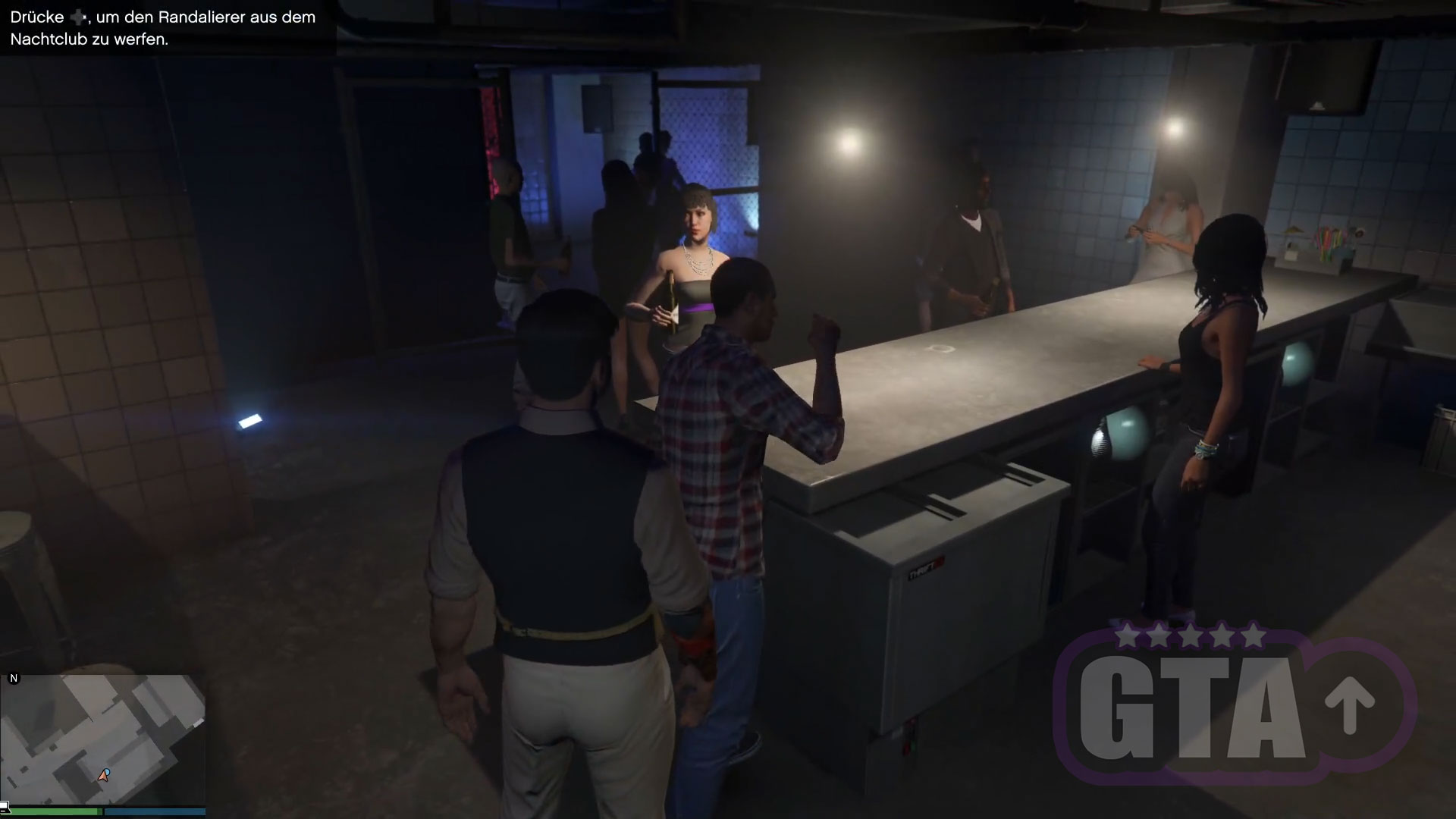 - Option 3: Als dritte Möglichkeit könnt ihr auf Events innerhalb eures Clubs reagieren. Diese beiden Event können passieren, wenn ihr euch in eurem Club befindet: Störenfriede (Blauer Punkt) oder ein betrunkener VIP (blaues Männchen). Störenfriede müsst ihr einfach nur aus dem Club werfen, während VIPs ohne Unfall ins Krankenhaus gebracht werden möchten. Beide Events gehen sehr schnell und bringen euch jeweils satte 10.000 GTA$ und 25 Prozent Nachtclub-Beliebtheit.