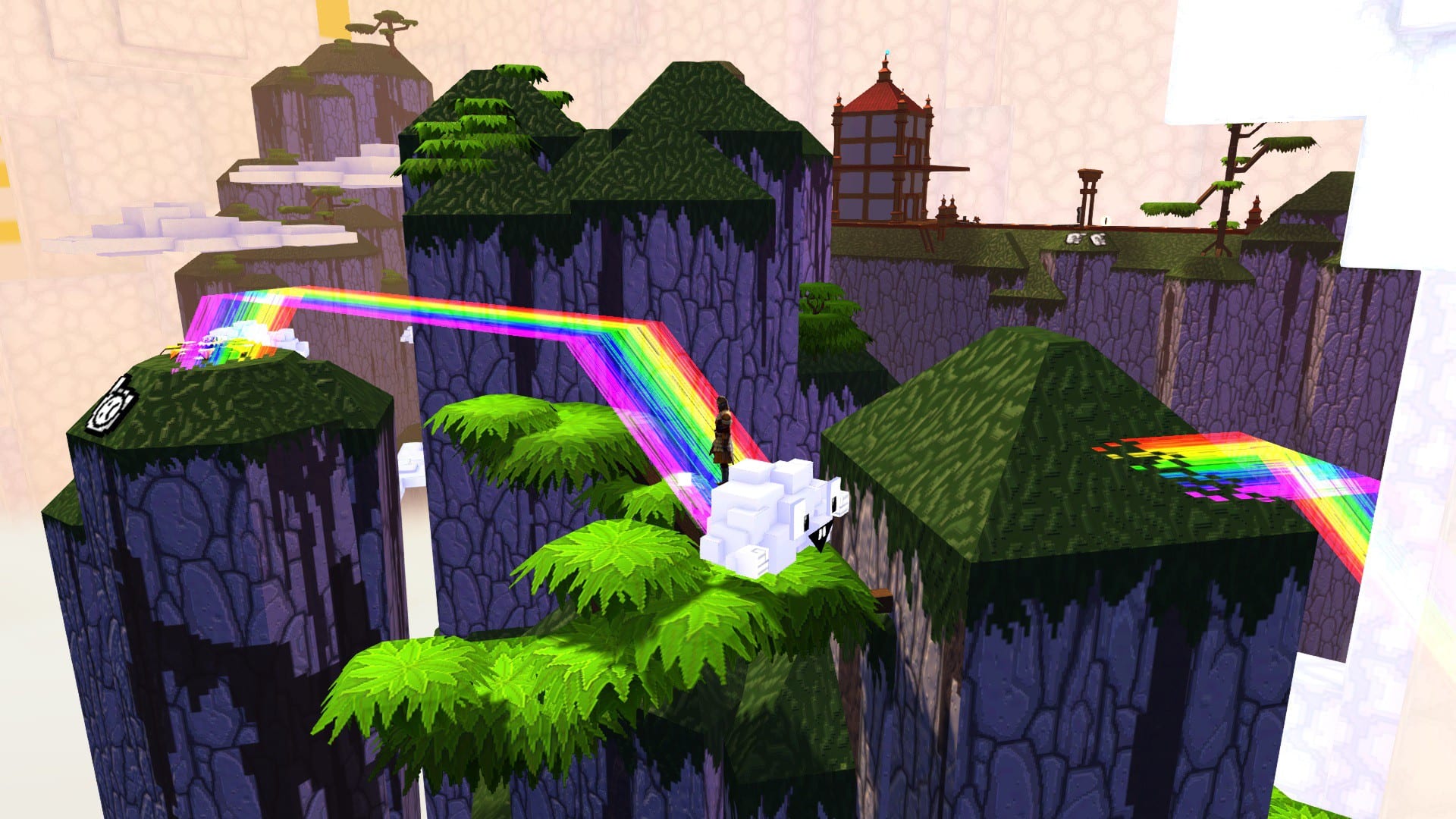 Das neue Einstiegs-Gebiet beinhaltet im Übrigen dennoch mehr als nur Anzeichen auf noch ausstehende Updates. Stattdessen wartet bereits der erste Spielspaß auf die Fans des Jump and Run, denn viele der Abenteurer fragen sich sofort, wie sie in der Mini-Welt den Aufstieg auf die Wolken schaffen. Dieser Weg führt über einen eher schwer zu finden Geheimgang, der die Geduld manches Spielers bereits strapazieren könnte, am Ende auch nur mit einem Feuerwerk belohnt. Wer den Geheimgang bislang nicht finden konnte und dies nachzuholen wünscht, sollte sich einmal im Netz oder auf YouTube schlaumachen – oder an den Kanten der Zone in die Tiefe blicken und sich fragen, ob dort nicht noch ein Pfad existieren könnte.