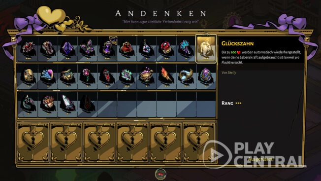 - Und nun geht es um die Qual der Wahl. Wir empfehlen den Glückszahn von Shelly, wenn ihr einen zusätzlichen (3.) Versuch nach dem Ableben benötigt. Das ist wohl die sicherste Wahl. Aber alternativ tut es auch die Ferne Erinnerung von Orpheus, da sie 30% mehr Schaden bei Gegnern in der Ferne anrichtet.
