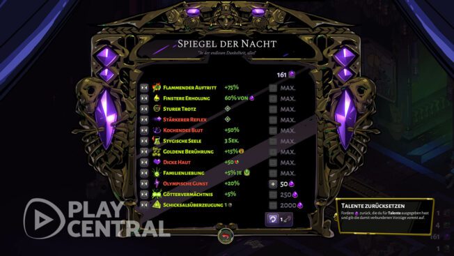 Zagreus natürlich, das versteht sich von selbst. Aber lediglich mit diesen Buffs, die ihm der Spiegel der Nacht verschafft. Welche Talente sollte ich also im Gepäck haben, bevor ich den Fluchtversuch als Zagreus wage?