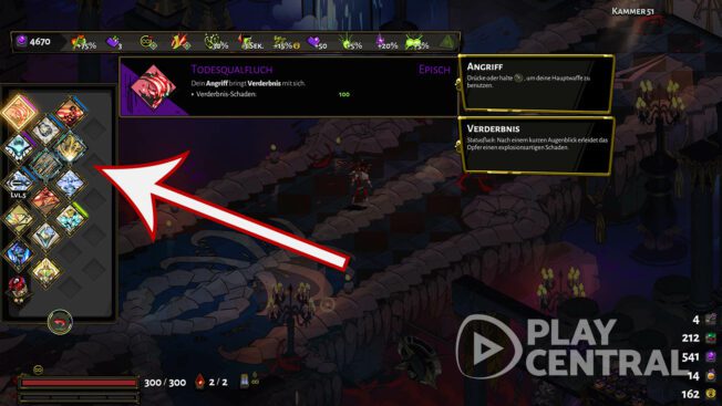 Aber welche Strategie ist geeignet, früh im Kampf gegen Hades zu bestehen? Und gibt es überhaupt die „eine und einfache Strategie“? Allein die Waffenvielfalt, sechs an der Zahl mit jeweils vier Variationen, macht es anfänglich schon sehr kompliziert, hier die richtige Auswahl zu treffen.