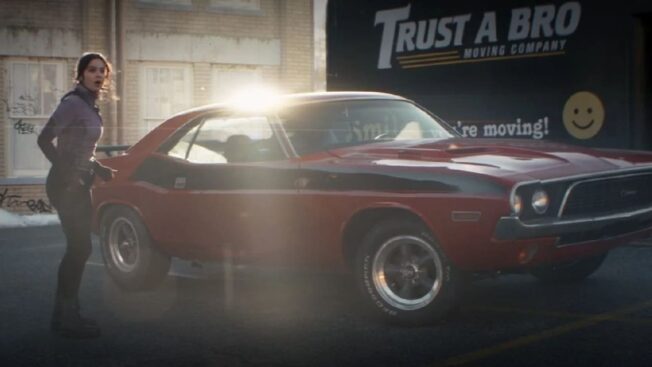 In der 3. Episode kommt es zu einer wilden Autoverfolgungsjagd, aus der wir bereits in den Trailern einige Ausschnitte sehen konnten. Bevor diese beginnt, will Kate einen Dodge Challenger klauen, um vor der Trainingsanzug-Mafia zu fliehen. Clint sagt ihr jedoch, dass dieses Auto dafür viel zu schade sei und er nicht möchte, dass es während der Verfolgungsjagd beschädigt oder schlimmstenfalls zerstört wird.