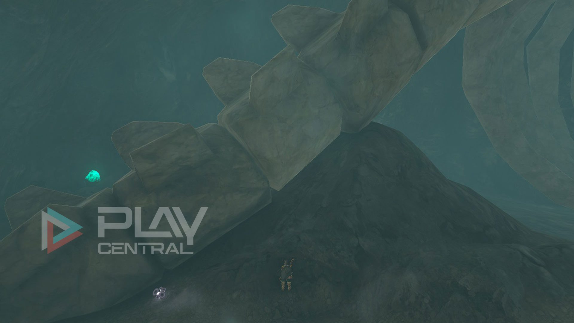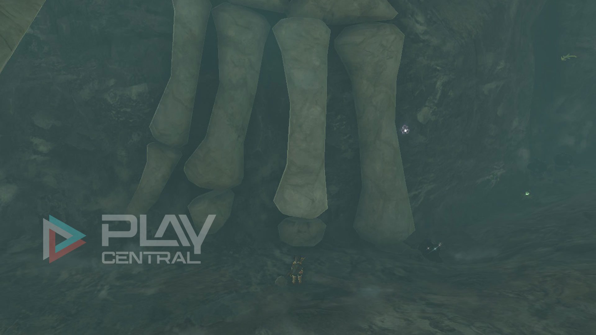 Der Knochen der Brustflosse befindet sich zwischen den zerstörbaren Felsen an der südwestlichen Seite der Höhle.