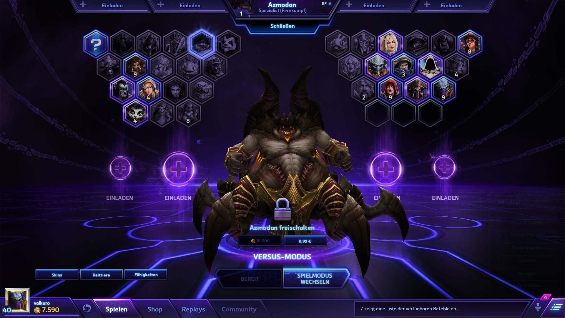 Zu Beginn sei darauf hingewiesen, dass Blizzard das Rad im MOBA-Genre natürlich nicht neu erfindet. Das Business in Heroes of the Storm beschränkt sich ganz wie bei der Konkurrenz auf den Verkauf von Helden, Skins und einigen nicht spielbeeinflussenden Boosts. 32 Helden stehen theoretisch zur Auswahl, doch nur sieben von ihnen tauchen in einer wöchentlich rotierenden Auswahl kostenlos auf. Wer mit der Auswahl nicht zufrieden ist, greift auf einen seiner individuell freigeschalteten Helden zurück oder geht kurzerhand auf Einkaufstour. Hierzu bedienen sich die Tester wahlweise echtem Geld oder der Gold-Währung. Der Goldsack füllt sich durch das Abschließen von täglichen Quests und Partien sowie mit dem Erreichen ausgewählter Account- oder Helden-Level. Für ein Tagesziel lässt Blizzard zwischen 200 und 800 Gold springen. Für ein gewonnenes Spiel 30 Münzen, für ein verlorenes 20. Wohlgemerkt kommt Gold nur beim Freischalten der Helden zum Einsatz. 2.000 bis 10.000 Gold kostet ein solcher Kauf. Dabei bewegen sich die meisten Charaktere in einem preislichen Mittelfeld bei rund 7.000 Gold.