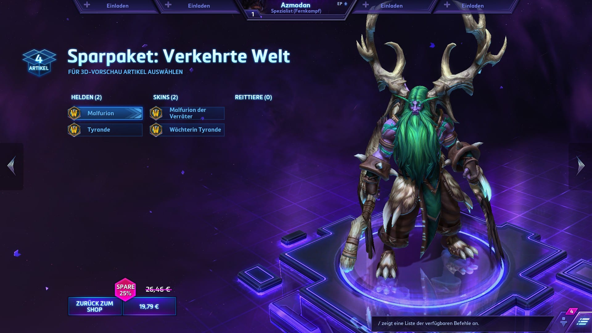 Prozente bietet Blizzard aktuell nur über sogenannte Spar-Angebote. Brandaktuell wäre hier ein Paket zu haben, das die zwei neuen Skins, davon je eins für Tyrande und Malfurion, vereint und auch die genannten Helden freischaltet. Statt dem Original-Preis von 26,46 € zahlen Kunden 25 % weniger, sprich 19,79 €. Bei all diesen Daten und Preisen ist aber ausdrücklich zu beachten, dass es sich um den Alpha-Stand handelt. Selbstverständlich behält sich Blizzard Änderungen vor.