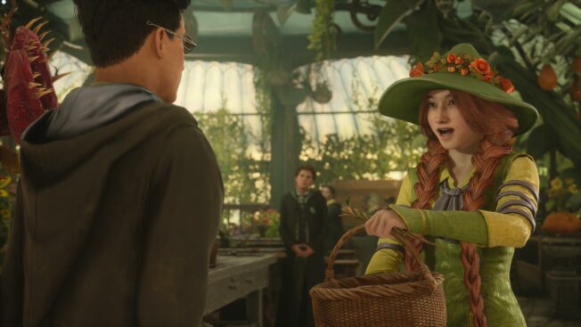 - Glumbumbel: Sucht das Gewächshaus auf, indem ihr den Glockenturm über die südliche Ausgangstür verlasst und dem Weg in den hinteren Bereich folgt. Hinter einer tiefen Mauer stehen einige Objekte, die wie Bienenstöcke aussehen, genau dort könnt ihr Revelio einsetzen.
