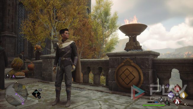Um alle vier Feuerschalen zum Brennen zu bringen, stellt ihr euch nacheinander vor die Schalen und bringt diese mit Incendio oder Confringo zum Leuchten. Sobald ihr das getan habt, könnt ihr fortan mit den Schalen interagieren, was bereits der wichtigste Schritt ist, um das Brücken-Rätsel zu lösen und die Belohnung einzuheimsen.