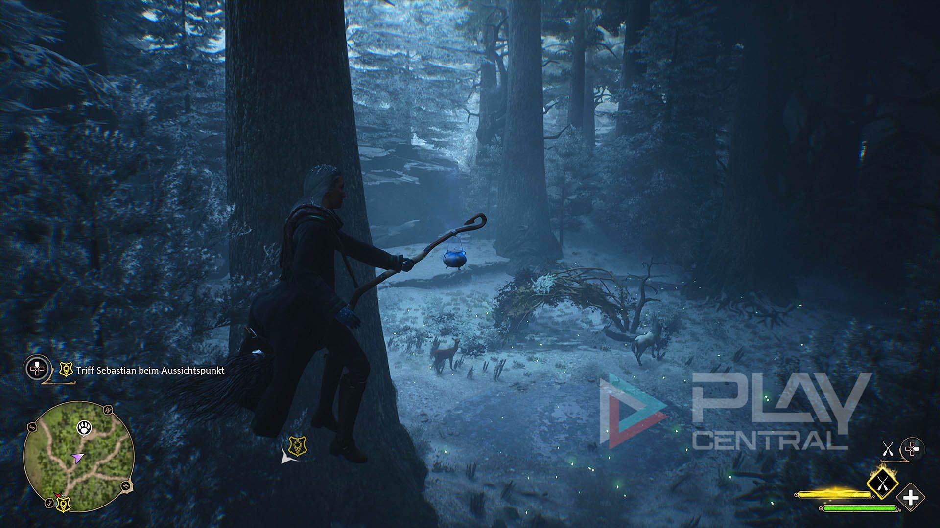 Das geht aber erst dann, wenn ihr das Vivarium im Raum der Wünsche freigeschaltet habt, was euch Zugriff auf den Schnappsack beschert. Spielt also so lang, bis ihr im Laufe der Hauptstory an den Punkt kommt, wo ihr Magische Tierwesen fangen könnt.