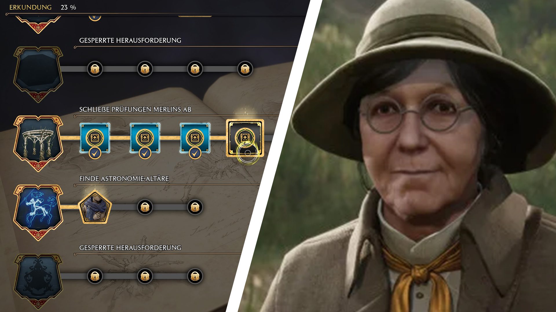 Ihr müsst zum Starten dieser Prüfungen lediglich die Hauptmission Die Prüfungen Merlins abgeschlossen haben. Diese ist verfügbar, sobald ihr die Hauptmission Das Mädchen aus Uagadou absolviert habt. Um die Sammelaufgabe freizuschalten müsst ihr der Hexe Nora Treadwell dabei helfen, die erste Prüfung Merlins zu absolvieren. Wie das genau funktioniert und wie sich die verschiedenen Rätsel lösen lassen, erklären wir euch in diesem Beitrag.