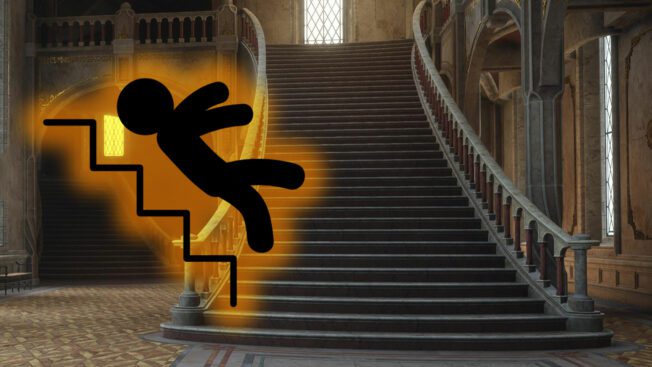 Ist euer Versuch von Erfolg gekrönt, könnt ihr nun vorsichtig auf dem Geländer nach oben gehen oder einfach abwarten, bis die Treppenstufen wieder normal sind. Eine Trophäe gibt es für euren Einsatz aber leider nicht.